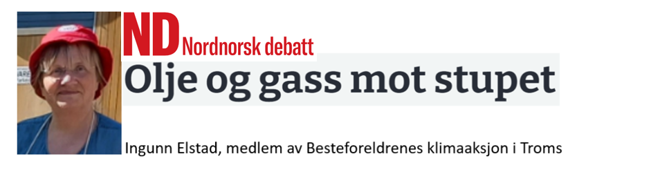 Klimautviklinga gjer at presset aukar mot oljeproduserande land. Men Noreg har såvisst ingen planar om å bremse. I staden skal det satsast på elektrifisering, sjølv om dette knapt betyr noko globalt – anna enn at meir gass blir frigjort til eksport og brent i utlandet. «Utsleppa går ut i den felles atmosfæren», skriv Ingunn Elstad i Nordnorsk debatt.