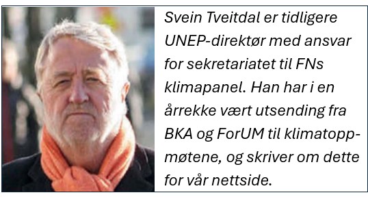 Verden planlegger kraftig økning i produksjon av olje, gass og kull. Summen er uforenelig med klimamålene fra Paris, men alle oljeland har ifølge seg selv gode grunner for å fortsette som før. Det er grunn til å ha moderate forventninger til FNs klimatoppmøte i høst, og vår evne til å løse felles globale problemer, sier Svein Tveitdal.