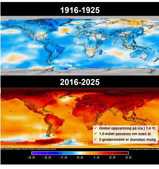 – I dag er den globale oppvarmingen omtrent 1,4 grader sammenlignet med førindustriell tid.