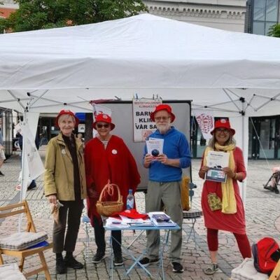 I går var Besteforeldrene i Drammen ute på torget igjen, for første gang etter korona-nedstengningen. – Vi møtte all slags reaksjoner blant de forbipasserende, forteller lokallagsmedlem Elisabeth Briseid. – Mange positive, heldigvis, men også de obligatoriske «Klimaet har alltid forandra seg», «Det årner seg nok», osv. Hva sier vi til dette?