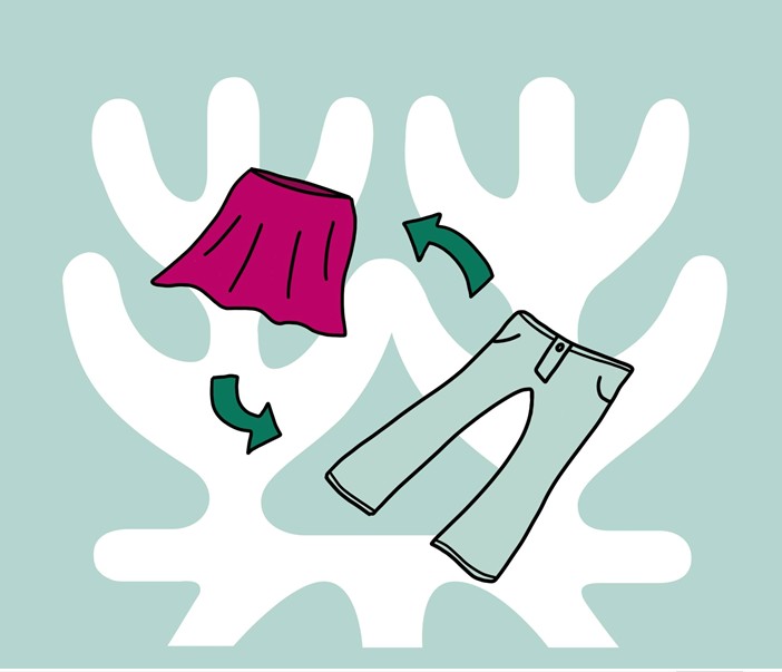 Forny garderoben din på en miljøsmart og hyggelig måte. Ta med deg maks syv rene plagg i god stand. Du får delt ut en lapp med antall plagg du har levert inn og kan velge deg ut like mange nye plagg.