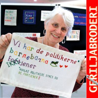 De populære klimaaksjons-broderiene til Elisabeth Briseid har vært utstilt på mange folkebibliotek, landet rundt. Denne gangen var turen kommet til Sandnes, før Covid-19 satte en bråstopp for planene. Så nå lager vi en utstilling du kan se på nettet, med presentasjon av nye broderi hver dag framover. Følg med på «Geriljabroderi – dagens bilde», og se hvordan Elisabeth får ut frustrasjonene sine!