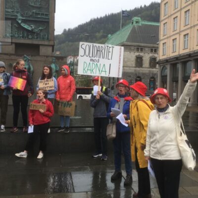 Kvar fredag kl 12 samlast ei gruppe skuleelevar på Torgallmenningen, for å halde liv i skulestreikrørsla og førebu den nasjonale aksjonsdagen 24. mai. Denne dagen var det elevar frå Steinerskolen og Ny-Khronborg som stilte opp. På førehånd hadde dei trent på slagord-synging og roping. Dei var støtta av besteforeldre som kom og ropte med: «Barna eier denne jord – ikkje Shell og Equinor!»