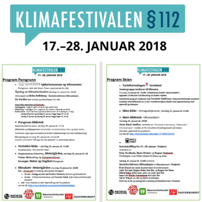 Klimafestivalen § 112 er en årlig klimamarkering. 2018 er fjerde gangen, og i dagene 17-28 januar blir det et mylder av store og små arrangementer over hele landet. Målet er å belyse det store klimaengasjementet som finnes i Norges befolkning, og å skape enda mer engasjement, sier Norsk Klimanettverk som koordinerer programmet. Klimakrisen løses ikke bare av eksperter og politikere – folket sitter på nøkkelen og bred demokratisk deltaking er avgjørende.