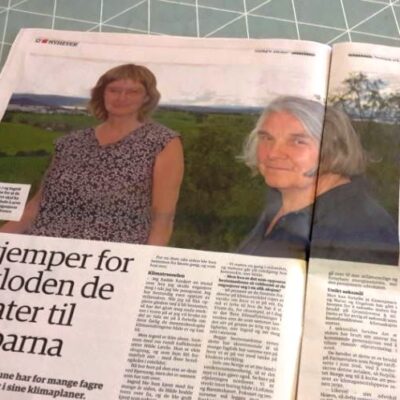 Ingrid Hoøen og Hilde Løvås er ivrige talskvinner for Besteforeldreaksjonen i Levanger, og er blitt sommerportrettert av avisa Innherred. Vi må starte med oss selv, sier de. Det er så lett å kritisere andre og si at de er så mye verre enn oss. Men Norge er ikke noe glansbilde i klimapolitikken. Det må en generell holdningsendring til, og der ønsker Besteforeldrene å bidra. Levanger er dessverre typisk: fagre ord og fine planer, men alt for lite blir gjort.