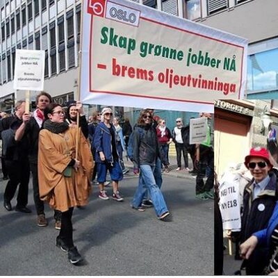 I Oslo fronter LO klimasaken med 1. mai-paroler om et krav om hundre tusen nye klimajobber. Engasjementet gjenspeiles i toget i hovedstaden, slik det har gjort i flere år. – En strålende dag ble det! Mange Besteforeldre i røde hatter, lang klimaseksjon i toget, applaus til oss fra fortauene, forteller en fornøyd nestleder, Finn Bjørnar Lund. Også fra Trondheim og Bergen meldes det om bra oppslutning, selv om LO ennå ikke har det samme grønne engasjement der som i Oslo.