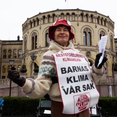 Idéen med små korte demonstrasjoner utenfor rådhuset når de folkevalgte skal i møter, sprer om seg. Bergen har holdt på med det lenge, og mandag denne uka var turen kommet til Sortland, – der fem spreke medlemmer av Besteforeldrenes klimaaksjon stilte opp kl. 08.30 til ei markering i forkant av kommunestyrets budsjettmøte.